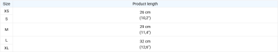 Saadaval olevad suurused: S (24–28 cm), M (28–32 cm), L (32–36 cm), XL (36–40 cm), XXL (40–44 cm)