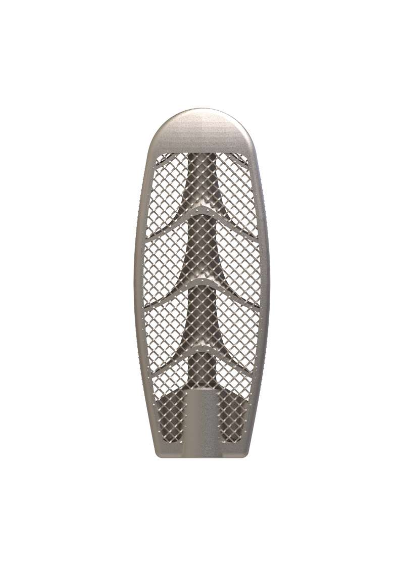 Progresīvā titāna tīkla struktūra kombinācijā ar ģeometriju, kas uzlabo elastību un stabilitāti, sekmē jauna kaula veidošanos un piedāvā izcilu platformu kaula ieaugšanai un uzaugšanai. Tas adresē dinamiskā fūzijas procesa priekšrocības, ievērojot Volfa likumu.